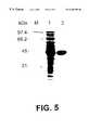 FIG. 5 shows the results of SDS-PAGE analysis of theC. thermocellumXynZ ferulic acid esterase+cellulose binding domain (FAE/CBD) over-expressed inE. coli. Lane M, low range protein standard markers (Bio-Rad Laboratories, Hercules, Calif.) including phosphorylase B (97.4 kDa), serum albumin (66.2), ovalbumin (45 kDa), and carbonic anhydrase (31 kDa)lane 1, E. colicell free extract;lane 2, heat-treated cell free extract.