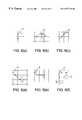 A few exceptional situations arise in which the local geometry of a figure demands special rules to ensure proper thinning behavior. These are cataloged in FIGS.7(a)-7(g). As shown, exceptional conditions occur under certain extended contour paths as indicated by dark arrows, or when certain pixels are black as indicated by question marks. FIG.7(a) shows a modification to the rule of FIG.5(g) wherein the pixel with the crossed out question mark (in thedirection4 relative to the subject pixel) need not be black in order for thinning to occur. Note that the path segment prior to the incoming segment is in thedirection0 and the pixel in thedirection1 relative to the subject pixel is not black. FIG.7(b) shows a modification to the rule of FIG.5(h) wherein the black subject pixel to the immediate left of the current trace position is flipped to white. Note that the path segment prior to the incoming segment is in thedirection0. FIG.7(c) shows another modification to the rule of FIG.5(h) wherein the black subject pixel to the immediate left of the current path location is flipped to white, and a new path target location is placed as shown by the square on the top border of the subject pixel. This modification to rule5(h) applies only if the proposed target position indicated by the square is ½ pixel distance in both the x and y directions from the last target position, as indicated by the triangle. Also note that the pixels in thedirections4 and3 relative to the subject pixel are black and the path starting at point P and ending at the current location is defined by the code {6,7,0,1}. FIG.7(d) shows a modification to the rule of FIG.5(e) wherein the black subject pixel may be flipped to white, a new path location is placed as shown by the square (between the subject pixel and the tested pixel), and the current location on the existing path is advanced to the location shown by the triangle—to the right of the pixel in thedirection3 relative to the subject pixel. As illustrated, the pixel in thedirection3 relative to the subject pixel is black and only the pixel in thedirection4 relative to the subject pixel needs to be tested. If it is black, the subject pixel is turned to white and the target path attained. FIG.7(e) shows a modification to the rule of FIG.5(i) wherein no target positions for the new path are specified at this step. Note that the path segment just prior to the incoming segment is in thedirection7. FIG.7(f) shows a modification to the rule of FIG.5(b) wherein if the path is as shown by the arrows (i.e.5,5,6,7,0 from P to the current path location) and the pixel indicated by the square (upper right of quadrant) is white, the location on the path indicated by the smaller square—which is also the current path location—should be taken as a target location for the new path and the extension rules applied. FIG.7(g) shows a modification to the rule of FIG.5(h), whereby three black pixels are flipped to white and the target location established between the rightmost pixels of the defined quadrant of pixels. The pixel to the immediate left of the current location (the subject pixel) and the pixels in thedirections4 and3 relative to the subject pixel comprise these three black pixels. The pixel in thedirection2 relative to the subject pixel is initially white and the path from point P to the current location is {5,6,7,0,1}.