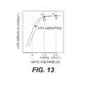 FIG. 13 is a graph showing the relation of the gate voltage and the drain current of the inventive MOS transistor;