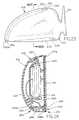 As best seen in FIGS. 22 and 26, signal light216 is positioned in a lower portion or bottom rim ofcasing212 and includes a light conduiting member orlight pipe230 and alight source232. The color of the light emitted fromsignal light216 is preferably amber, yellow-amber, or amber-red, depending on its application and may be generated by a boot or cover, a filter, a reflector which surrounds the light source, the light source or the light pipe or a combination of one or more of the aforementioned devices. For example,light source232 may produce, for example an amber light from a coating on the light source bulb or from a gas enclosed in the bulb or from the light producing element of the light source. In addition, signal light216 preferably produces a light intensity of at least about 0.3 and in the range of about 0.3 to about 200 candela, more preferably, in a range of about 0.6 to about 150 candela, and most preferably, in a range of about 1.0 candela to about 25 candela, such thatsignal light216 preferably meets the specification for the applicable automobile industry standards such as Japanese Industrial Standard (JIS) 5500; ECE Reg. 48; EEC No. 76/759; and/or E/ECE/324 Reg. No. 6. Moreover, signal light216 may produce a variable light pattern intensity. For example, referring to FIG. 21, in theregion217coflight pattern217 which is forward oftransverse axis211b,the light intensity may have one intensity value, while theregion217drearward oftransverse axis211bmay include another light intensity value. Furthermore, eachregion217cor217dmay have a variable intensity pattern. For example, the portion of theregion217cor217dnearest toaxis211bmay have a higher light intensity than portions of theregion217cor217dangled further away fromaxis211b.In this manner, signal light216 is visible to persons on the road who are approaching the vehicle from the forward or rearward direction or persons located adjacent the vehicle.