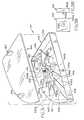 With reference to FIGS. 7 and 8, as is conventional,reflectance element28 is mounted to abracket43 by anactuator42.Casing34 is mounted tobracket43.Actuator42 provides remote positioning ofreflectance element28 on two orthogonal axes. Such actuators are well known in the art and may include a jackscrew-type actuator42 such as Model No. H16-49-8001(right-hand mirror) and Model No. H16-49-8051(left-hand mirror) by Matsuyama of Kawagoe City, Japan, as illustrated in FIG. 7, or a planetary-gear actuator42′ such as Model No. 540 (U.S. Pat. No. 4,281,899) sold by Industrie Koot BV (IKU) of Montfoort, Netherlands, as illustrated in FIG.20. As is also conventional, theentire casing34 includingactuator42,42′ is mounted viabracket43 for breakaway motion with respect tostationary panel38 by a breakawayjoint assembly44. Breakaway joint assembly44 (FIG. 9) includes astationary member46 attached tovehicle40, a pivotingmember48 to whichbracket43 andcasing34 are attached, and a wire-way50 through which awire cable52 passes.Wire cable52 includes individual wires to supply control signals toactuator42,42′, as well as signals to control the level of reflectivity, ifreflective element28 is of the variable reflectivity type noted above, such as an electrochromic mirror. Power may also be supplied throughcable52 for a heater (not shown) as disclosed in U.S. Pat. No. 5,151,824 in order to evaporate ice and dew fromreflective element28.