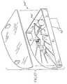 Referring again to FIGS. 41A and 41B,light assembly718 preferably includes twolight sources728 and730 and at least oneoptical element732. Alternately, a single light source with bifurcated and/or compound emitting directions can be used and/or an optical element such as a lens with bifurcated and/or compound facets can be used.Optical element732 includes afirst illuminator portion734 which extends along thelower wall736 ofhousing714 and which directs light downwardly and rearwardly of the vehicle when thehousing714 is in its normal operating position preferably while restricting light from entering the vehicle so that the light is substantially unobservable by the occupant of the vehicle.Optical element732 includes asecond illuminator portion740 which extends fromfirst illuminator portion734 and wraps around the lower outboard corner ofhousing714 and upwardly along end oroutboard wall742 ofhousing714.Second illuminator portion740 ofoptical element732 projects light downwardly and rearwardly off the vehicle whenhousing714 is in a folded position, as shown in FIG.40. Preferably,light source728 is associated with and projects light throughfirst illuminator portion734 ofoptical element732, whilelight source730 is associated with and projects light thoughsecond illuminator portion740 ofoptical element732. In this manner,light sources728 and730 may be individually actuated when themirror assembly housing714 is moved between the normal operating position and folded positions.Light sources728 and730 preferably comprise light emitting diodes (LED's) or mini or micro-incandescent lamps, for example micro bulbs such as Christmas light bulbs. For examples of other light sources which may be incorporated intolight assembly718, reference is made to the previous embodiments.