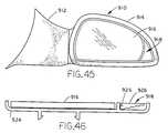 Supported onmirror support924 adjacentreflective element916 is signallight assembly918. Signallight assembly918 directs light laterally and rearwardly from the vehicle and, further, away from the vehicle so that the light is substantially unobservable to the occupant of the vehicle. As best seen in FIG. 46, signallight assembly918 includes at least onelight source926 and alight conduiting member928 similar to the previous embodiment. Also similar to the previous embodiment, signal light918 is positioned preferably in an outboard position to minimize the interference with the field of view ofmirror element916. Preferably,light conduiting member928 andreflective element916 are substantially aligned in a common plane so that the outer surface of signallight assembly918 is generally flush withreflective element916 to form substantially contiguous surfaces. Reference is made to the previous embodiments for further details of suitable light sources and light conduiting members. Optionally,light assembly918 may include a cover (not shown) to seal light source. However, it should be understood that a sealant may be used in lieu of a separate cover, such as an epoxy.