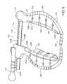 In this embodiment, theextensions232 are aligned generally parallel to therack segment114 of theretractor102 and are generally perpendicular to the lengthwise dimension of thearms112 and116 of the retractor. Additionally, one or twoextensions232 may be used and thesuture organizing device230 may be attached to theretractor102 either prior to use or following the use of theretractor102 to open the chest of the patient. As shown, theextensions232 preferably includeadditional suture slots212 that are spaced apart from the suture slots that are located adjacent to the arms of the retractor. It is anticipated that the use of the extensions will provide the surgeon with the ability to temporarily retain sutures in theextensions232 during the procedure and also retain the sutures in an additional plane and location that is separate from the arms of the retractor. For example, this may be particularly useful in various valve procedures where the surgeon desires to temporarily retain numerous sutures along the periphery of the valve.