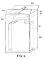 FIG. 2 illustrates a perspective view of an exemplary packaged container article and associated closure which can provide, upon activation, a signal to a user operator. Thus a packaged container article orbottle20 can have afirst seal50, a signal ormotion module60 can in embodiments be packaged in asuitable closure230, such as a corrugated cardboard box, plastic container or bag, or the like closures, and which closure can include, for example, one ormore flaps232, and which flaps can have at least one flap connected to the container orcartridge article20 by a secondbreakable seal250 which can act as a seal-switch that once broken can activate the signal ormotion module60.Seal250 can be constructed by known manufacturing methods and made of, for example, a rigid material or preferably a slightly elastic material which elastic material resists or does not break under typical forces encountered in, for example, rigorous shipping and handling operations, but will break when intentional and deliberate force is applied to openingclosure230 or removingflap232. Thus seal250 in effect can act as a “rip cord” that when pulled with sufficient force breaks or alternatively activates the signal-sensor module60.