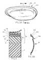 In the present invention, no liquid paint is used to decorate the shell substrate. As a result, there is no puddling or accumulation of wet paint in the discontinuity which upon drying destroys or deteriorates the edge definition. Instead,film18 andsubstrate17 conform to the edge definition thus maintaining the edge definition integrity. In order to reduce stretching offilm18,film18 may be pre-formed or pre-molded before molding inmold cavity113. Referring to FIGS. 3A and 3B, for example,film18 may be pre-formed by vacuum press molding into the general shape of the desiredcomposite shell16 and/or formed, also pre-formed, to include asurface discontinuity70aso that whenfilm18 is placed in the injection mold apparatus, and molded intocomposite shell16 with the polymer resin, the shell will undergo less stretching during the molding process. Preferably,film18 has a total thickness in a range of approximately 1.0 to 0.25 mils, more preferably, 1.2 to 2.25 mils and, most preferably, 1.5 to 2.0 mils prior to molding ontosubstrate17.