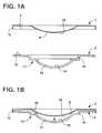 FIGS. 1A and 1B are elevational views in cross section showing a mold assembly including a male mold and a female mold, which mold assembly is constructed according to one embodiment of the present invention, wherein FIG. 1A is a view showing the mold assembly before the two molds are closed together, while FIG. 1B is a view showing the mold assembly when the two molds are closed together;