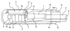 A drivengear17 is mounted on the underside of the internal support (not shown) and extends around the circumference thereof. The drivengear17 is mated to, i.e., meshes with, a drive gear orpinion gear14 which is, in turn, connected to, and is driven by, amotor1.Drive gear14 is mounted on anoutput shaft1aofmotor1 so as to rotate withshaft1a. Themotor1 is mounted within a housing along the longitudinal axis thereof and is typically between 3-5 mm in diameter.Motor1 is preferably equipped with areduction gearbox12 provided betweendrive shaft1aandmotor1.