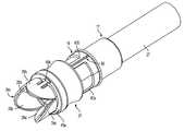 In contrast to prior devices such as the device illustrated in FIG. 1, the outer leaves39a,39band39cof the instrument described herein move radially inward and outward with no lateral sliding against the tissue surface. This radial movement provides a number of significant advantages. For example, the radial movement of the leaves avoids the possibility of pushing the tissue off of the forming surfaces when engaging the leaves. The radial movement also avoids the risk of damaging the tissue as a result of sliding action between the forming surfaces.