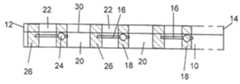 A variety of methods are useful for the deployment of the plurality of needles along the length of tubing. For example,needles16 may be attached in spaced-apart relation to atether30. Thetether30 is preferably attached at the proximal end ofneedle16. The distance between the spaced apart needles on the tether is determined primarily by the desired volume which the individual single-use syringes are designed to deliver. This determination is a matter of routine experimentation to one skilled in the art. As will be discussed below, heat sealing is a preferred method for sealing thereby introducing alternating fluid volume regions and needle sheath regions. In light of the fact that heat sealing is a preferred method for sealing, it is also preferable that the tether be produced from a heat-sealable material (e.g., thermoplastic, foil or polyfoil).