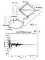 DESCRIPTION OF THE PREFERRED EMBODIMENTSThis invention provides a method and a system for analyzing cough sounds for diagnostic purposes. A diagram illustrating the present system to measure cough sounds is shown in FIG. 5B. A subject being tested coughs into a mouthpiece connected to a tube to which one or more microphones have been attached. The microphone is positioned so that its diaphragm is tangent to the inner surface of the tube and in a manner which minimizes reflections and/or distortion of sound waves passing through the tube. A long flexible section of hose or tubing is connected to the end of the metal tube opposite the mouthpiece. The system is designed so that the acoustical signal representing a cough sound pressure wave travels along the tube as a plane wave. As the sound travels through the long tubular system having a constant cross-section, it becomes attenuated. Any sounds reflected from the open tube back toward the microphone will be reduced in amplitude, therefore, and should not significantly interfere with cough sounds measured at the microphone. This can be compared with recording cough sounds in a room (FIG. 5A) in which reflections from the walls and objects in the room interfere with the recorded cough sounds. Moreover, further reflections are generated within the mouth as the sound waves passes from the mouth into the room with the system in FIG. 5A; since the cross sectional area dramatically increases (i.e., from the mouth to room), these reflections and/or distortions can be significant. The reflections from the walls, other objects and within the mouth itself are very difficult to eliminate. The present system significantly reduces and/or essentially eliminates such reflections or distortions. By using the essentially uniform cross section of the mouthpiece, rigid tubing, and flexible tubing, the reflections from wall or objects in the room are essentially eliminated. Moreover, since the mouthpiece and the mouth opening are essentially the same diameter when the subject coughs, reflections from this junction are also significantly reduced and minimized (especially relative to the situation illustrated in FIG.5A).