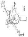 To simplify the electronic detection system and to use asingle detector215 instead of a diode LA, a rotating diffraction grating DG with a vertical extension in the form of a reflecting mirror ME is used as shown in system73 in FIG.21. The diffracted beams are reflected from a stationaryspherical mirror SM220 which displaces these beams in the vertical direction and directs them back to the rotating reflection mirror ME. Beams reflected from rotating mirror ME are directed into avertical slit VS216. The slit plane is optically conjugated with the grating plane by the reflectingspherical mirror SM220. Optical signal passing the slit is detected by demodulating the single detector output at the Doppler shift frequency between signal and reference beams produced by rotating grating RG.