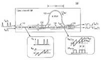 Different interferometric configurations have been proposed. Some are based on Michaelson (MI), others are based on Mach-Zehnder interferometer (MZI) configurations with the nonlinear elements on one or both branches of the interferometer arms. (See, e.g., K. Tajima, “All Optical Switch with Switch Off Time Unrestricted by Carrier Lifetime; Jpn. J. Appl, Phys. Vol., 32, No. 12A, pp. L1746-1749; December 1993; K. E. Stubkjaer, T. Durhuus, B. Mikkelsen, C. Joergensen, R. J. Pedersen, C. Braagaard, M.Vaa, S. L. Danielsen, P.Doussiere, G. Garabedian, C. Graver, A. Jourdan, J. Jacquet, D. Leclerc, M. Erman, and M. Klenk, “Optical Wavelength Converters”Proc. European Conf. on Opt. Communication, Firence, Italy, Vol., 2, 635-642, September 1994; J.M.Weisenfeld, “Wavelength Conversion for Optical Networks”, Second Optoelectronic & Communications Conference (OECC97), Technical Digest, pp. 426-427, July 1997. Recent developments include hybrid wavelength converters, using only a single SOA followed by a delay-interference section, formed by a calcite crystal. (See, Y. Ueno, S. Nakamura, K. Tajima, S. Kitamura”, “3.8 THz Wavelength Conversion of Picosecond Pulses Using a Semiconductor Delayed-Interference Signal-Wavelength Converter (DISC)”, Photon. Technol. Letters, Vol., 10, No. 3, March 1998; Y. Ueno, K. Tajima, “Wavelength Converter”, EP 0 875 782 A2.