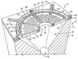 The actuatingmembers26 are each anchored at a region proximate theink ejection port28 and have free,arcuate ends30. Further, the actuatingmembers26 have radially extendingsides32.Adjacent sides32 ofconsecutive actuating members26 are spaced to accommodate inward bending movement of theactuating members26.