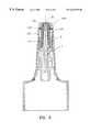 FIGS. 3 and 4 are diagrammatic section views of the top portion of the spray heads shown in FIGS. 1 and 2, when the closure member is respectively in the closed position and in the spray position;