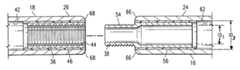 Referring to FIGS. 1-4, and primarily to FIGS. 1 and 2, the hollowfemale connector36 has anexterior surface40 and an interior portion that includesinternal threading44. When installed, the hollowfemale connector36 is recessed into the secondhollow shaft member18 substantially flush with thefirst end26 of theshaft member18. The hollowfemale connector36 is secured by an adhesive or by spot welding or other connection technique to theinterior42 of the first end of thesecond shaft member18. Preferably, an epoxy adhesive46 (shown in FIG. 3) is used to secure the hollowfemale connector36 inside theshaft member18. Thefemale connector36 has an inside diameter, ID4, and an outside diameter, OD3.