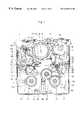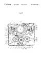 The main power transmitting means comprises amotor gear31 of the capstan motor M, adriving gear pulley32 which is rotatably mounted to a rear part of the upper face of themain chassis1 and always engaged with themotor gear31, acentral gear pulley36 which is rotatably mounted to a front middle part of the upper face of themain chassis1 by ashaft pin33 and integrally formed with upper andlower gears34,35 respectively having different diameters, atiming belt37 which connects thedriving gear pulley32 with thecentral gear pulley36, and a gear train for selectively transferring the rotational power of thecentral gear pulley36 to thecam gear3.