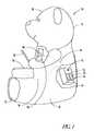 As further shown in FIG. 2 the keyboard-like appendage25 is generally rectangular in shape and also, preferably made of some soft plush construction. The keyboard-like appendage is positioned between the toy'shands22 and26 and above the toys'legs28 and32. The keyboard-like appendage25 is provided with pressure switches36-43, each designated with a number44-51 which in this embodiment are “1”, “2”, “3”, “4”, “5”, “6”, “7”, and “8” and resemble piano keys.