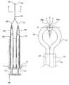 Preferably, the needles ends118 and128 are configured to eject the components so that the ejected component are impinged and redirected to the treatment site. More preferably, the needles ends118 and128 are bent to have the shape of partially opened circle which has open portion on the symmetry axis C of theneedle bodies116 and126.
