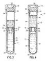 Assembly70 further includes abottom closure100 that is securely engaged within the openbottom end82 ofouter container72 and the openbottom end82 of theinner container74. More particularly,bottom closure100 is dimensioned to sealingly hold inner andouter container74 and72 respectively with one another at their open bottom ends.Bottom closure100 includes aresealable septum102 which is structurally and functionally similar to theresealable septum36 of thetop closure16 described and illustrated above.