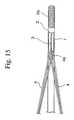 A funneledtube18 as a guide tube andforceps19, as shown in FIGS. 10 and 11, are provided to help collapse the artificial blood vessel A. The funneledtube18 is provided with an enlarged inlet opening18aof an enlarged diameter at the rear end portion, through which the tubular artificial blood vessel A is inserted into the funneledtube18. The funneledtube18 is gradually reduced in diameter from the enlarged inlet opening18ato end in atubular connector18bof a smaller diameter at the front end portion thereof, so that thetube18 has a taperedinner surface18d. The funneledtube18 is, as shown in FIG. 25, removably connected to thecartridge6 by inserting thefront connector18binto therear end portion6bof thecartridge6. Theforceps19 are used for picking the artificial blood vessel A so as to insert it into the. funneledtube18. Theforceps19 are provided on its picking surface with an engagingmember19ahaving serrations against the direction to be inserted and for the direction to be pulled out so as to lessen the sliding resistance between theforceps19 and the artificial blood vessel A when theforceps19 are inserted relatively smaller than that when pulled out.