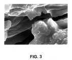 FIGS. 2 and 3 are photomicrographs showing the surfaces of demineralized human bone possessing precipitates of nonadhesive binding agent distributed thereon in the form of crystals (FIG. 2) and as a bridge-like structure between adjacent bone particles (FIG.3).