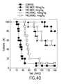 FIG. 38 shows the percentage of survival as a function of time for four different treatment groups in an in vivo melanoma tumor model.