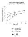 FIG. 33 graphically represents the in vitro effect of side chain structure on the protein release kinetics of FITC-BSA with a 10% loading level.
