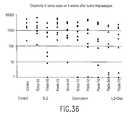 FIG. 36 shows the distribution of tumor sizes in mice four weeks after tumor implantation in an in vivo melanoma tumor model.
