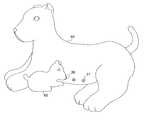As shown in FIG. 4, thefemale toy dogs60 are anatomically correct, they haveteats37. Theiroffspring62, the puppies, will havemouths38 that can be joined to the mother'steat37. Likewise, a mother-offspring relationship can be simulated. Any fastener or other releasable means of attachment may be used, but a snap-like is preferred. The mother'steat37 protrudes, and the offspring'smouth38 can snap on to it. Alternatively, the mother's teat may be made from hook and loop hastening material, such as Velcro®, and the offspring's mouth may have a mating strip of hook and loop fastening material.