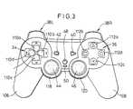As shown in FIG. 4, when the first andsecond grips106,108 are gripped respectively by the palms of the hands of the game player, the thumbs Rf1, Lf1 of the right and left hands can extend over theswivel control members44,46 of the first and secondanalog control pads118,120, the first through fourth pressable control members110a-110dof thefirst control pad34, and the first through fourthpressable control members112a-112dof thesecond control pad36, and can selectively press theswivel control members44,46, the pressable control members110a-110d,and thepressable control members112a-112d.