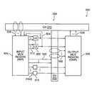 OMR508 programmably routes and couples signals from the outputs of LEs300 (via conductors524), input-output pins516, and GVs220 (via conductors532).OMR508 programmably couples these signals to GHs210 (via conductors536). For example, viaOMR508, the outputs ofLEs300 may be programmably coupled toGHs210. ViaOMR508 andGHs210, one LAB may be programmably coupled to other LABs to create more complex logic functions. Also, input-output pins516 may be programmably coupled throughOMR508 toGHs210 for routing elsewhere on the integrated circuit. Consequently, input-output pins516 may driveLABs200 directly without utilizing input-output drivers230 (shown in FIG.2).