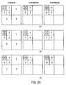 FIGS. 18-20 show assignment of code-blocks to parallel units for 128×128 tiles, 64×64 code-blocks and three transform levels, respectively. The assignments are made to balance the amount of coding to be performed by each of the parallel coders. In one embodiment, code-blocks are assigned so that each MQ coder codes, to the extent possible, approximately the same number of coefficients, with a balance between higher level and lower level coefficients. Other configurations are possible.