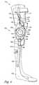 SUMMARYThe orthotic device illustrated in FIGS. 1-2 provides significantly enhanced performance compared to a conventional fixed knee orthosis. However, the extremely wide lateral profile of theclutch34 makes thedevice10 unattractive and difficult to wear under clothing such as trousers or skirts. In addition, the offset between thelateral thigh strut30 and thelateral shank strut40 increases torsional loading at the joint compared to conventional in-line braces. The foot sensors attached to both thedevice10 and the opposed foot of the wearer are both unattractive and inconvenient to connect/disconnect.