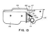 the developing means frame17 (117) which supports the development roller18 (118) and is pivotally attached to the toner storage frame16 (116);