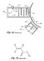 According to the state of the art of making plasma polymerized films, PECVD and flash evaporation or glow discharge plasma deposition and flash evaporation have not been used in combination. However, plasma treatment of a substrate using glow discharge plasma generator with inorganic compounds has been used in combination with flash evaporation under a low pressure (vacuum) atmosphere as reported in J. D. Affinito, M. E. Gross, C. A. Coronado and P. M. Martin, “Vacuum Deposition Of Polymer Electrolytes On Flexible Substrates,” Proceedings of the Ninth International Conference on Vacuum Web Coating, November 1995, ed. R. Bakish, Bakish Press 1995, pg. 20-36, and as shown in FIG. 1a. In that system, theplasma generator100 is used to etch thesurface102 of a movingsubstrate104 in preparation to receive the monomeric gaseous output from theflash evaporation106 that cryocondenses on theetched surface102 and is then passed by a first curing station (not shown), for example electron beam or ultra-violet radiation, to initiate cross linking and curing. Theplasma generator100 has ahousing108 with agas inlet110. The gas may be oxygen, nitrogen, water or an inert gas, for example argon, or combinations thereof. Internally, anelectrode112 that is smooth or having one or morepointed projections114 produces a glow discharge and makes a plasma with the gas which etches thesurface102. Theflash evaporator106 has ahousing116, with amonomer inlet118 and an atomizingnozzle120, for example an ultrasonic atomizer. Flow through thenozzle120 is atomized into particles ordroplets122 which strike theheated surface124 whereupon the particles ordroplets122 are flash evaporated into a gas that flows past a series of baffles126 (optional) to anoutlet128 and cryocondenses on thesurface102. Although other gas flow distribution arrangements have been used, it has been found that thebaffles126 provide adequate gas flow distribution or uniformity while permitting ease of scaling up tolarge surfaces102. A curing station (not shown) is located downstream of theflash evaporator106.