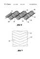 Corrugatingmembers226 and227 adapted to have such a sheet offibers126 fed into them can have theirridges228 oriented generally in the range of 0 to 90 degrees with respect to their axes, but preferably have theirridges228 oriented at 0 degrees with respect to (or parallel to) their axes which simplifies making of thecorrugating members226 and227.