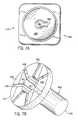 Thereservoir40 may be made from a plastic material, and has abody43 that terminates in amouth44. Themouth44 is sealed so as to contain theliquid bait42 in thereservoir40 by way of aclosure46. Theclosure46 may be any material suitable for sealing themouth44 of thereservoir40. However, the closure material must be capable of being punctured by thepiercer160 as will be described below. One suitable material for theclosure46 is a foil material commonly used as a safety seal on pharmaceutical containers. Thereservoir40 is arranged in theinsect bait station10 in an inverted position as shown in FIGS. 3A and 3B. One end of thereservoir40 is arranged in abutting relationship with anunderside84 of theactivation member80 between spaced apart mountingtabs81. Themouth44 of thereservoir40 fits snugly against an inner surface of the cylindricalinner wall24. Themouth44 of thereservoir40 is positioned between inwardly directed protrusions38aand38bon the inner surface of theinner wall24 in order to maintain the sealedreservoir40 in a30 storage position as shown in FIG.3A.