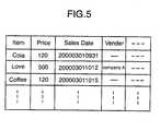 FIG. 5 is a drawing showing a record of sales information in the control computer of the automatic vending machine.