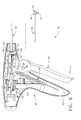 Alatch slot45 is located proximally to and below theshaft slot44 within theright handle half41.Latch slot45 is right-angled in shape and is provided for the reception of alatch55 therein.Latch55 has arigid latch post57 at a distal end and a right-angledbeam56 extending distally therefrom.Beam56 is formed from a resilient spring material such as stainless steel. A distal end ofbeam56 is captured and held within thelatch slot45 with a significant amount of thebeam56 cantilevering therefrom. The cantilever portion of thebeam56 enables thelatch post57 to move freely up and down as thebeam56 deflects. The significance of thelatch55 will be described later.