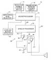 In the FIG. 1 embodiment, the programmedmicroprocessor14 controls the synthesis of each word from thespeech synthesizer18 by producing an output on anaddress bus20 of the starting address of the word in the dictionary of thespeech synthesizer18. As will be appreciated, the particular manner in which the microprocessor controls the speech generator depends upon the manner of operation of the speech generator, since different commercially-available speech generators are controlled in different ways.