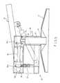 Theupright shaft21 is fixedly fastened to the center of thebase11 at the top, having a toothed engagement device, for example, abevel gear22 provided at the top side and astop ring24 provided around the periphery at the bottom side above thebase11.