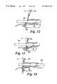 FIGS.9,10 and11 are part longitudinal sectional views of the sewing end of the device shown in different operating positions;