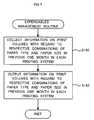 FIG. 7 is a flowchart showing an expendables management routine carried out by the expendablesproduction management computer122 installed in the mechanicalsexpendables production section22 and by themaintenance computer124 installed in thesystem construction section24. This routine is executed at the beginning of every month. When the program enters the expendables management routine, the expendablesproduction management computer122 and themaintenance computer124 first communicate with the built-in computers of theprinting systems132,134, and136 installed at the mini-labo32, thedrugstore34, and theshopping mall36 to collect information on the print volumes with regard to the diverse combinations of paper type and paper size in previous one month in therespective printing systems132,134, and136 (step S160). The computer then outputs the collected information on the print volumes with regard to the diverse combinations of paper type and paper size in previous one month in therespective printing systems132,134, and136 in an enumerative manner to the corresponding CRT or printer (step S162). The program then exits from this routine. This series of processing enables the mechanicalsexpendables production section22 and thesystem production section24 to grasp the information on the print volumes with regard to the diverse combinations of paper type and paper size in previous one month in therespective printing systems132,134, and136. The mechanicals expendablesproduction section22 makes the results of the processing reflected on a production plan of expendables, thus ensuring production based on the adequate production plan of expendables. Thesystem construction section24 makes the results of the processing reflected on maintenance of therespective printing systems132,134, and136, thus enabling theprinting systems132,134, and136 to be kept in the favorable conditions.