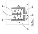 Particular embodiments of the temperature compensated MEMS structure that includes a frame and an active microactuator are depicted in FIGS. 5 and 6. In both embodiments, the frame further comprises at least one anchor affixed to the first major surface of the microelectronic substrate such that the remainder of the frame is suspended above the substrate and capable of moving relative to the substrate. As shown in FIGS.5(a) and5(b), for example, aconcave frame420 having a generally C-shape is suspended from asingle anchor421. As such, theactive microactuator425 can be disposed within the frame such that the leading end of the coupler protrudes through the open end of the frame. In an alternative embodiment shown in FIG. 6, theframe430 includes a pair ofanchors431 and432 for supporting opposite sides of the generally closed frame that substantially surrounds theactive microactuator435.