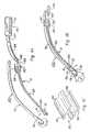 Referring now to FIG. 18, there is shown atransilluminating retractor1103 having an attachablelight delivery system1300. Arrows A illustrate the directions in which retractor1103 is movable.Light delivery system1300 is generally comprised of alight distributor1360 and alight emitter1310.Light distributor1360 includes connecting members (not shown) for connectinglight delivery system1300 to a light source (not shown).Light distributor1360 preferably takes the form of an optic light guide cable, which may be either rigid or flexible. A connector1364 is provided to connect andinterface light distributor1360 withlight emitter1310.Attachment members1380 and1388 connectlight delivery system1300 toforceps1103. In one embodiment of the presentinvention attachment member1380 takes the form of a clip.Light emitter1310 extends along the inner surface of the retractor arms.