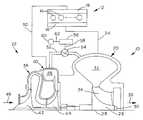 To ensure that a positive pressure differential exists between twostage compressor22 andturbine20,conduit52 is coupled with twostage compressor22 at a location of maximum total pressure, and is coupled withturbine20 at a location of minimum static pressure. According to principals of fluid dynamics, the total pressure at any location within twostage compressor22 orturbine20 is the sum of both the dynamic pressure and the static pressure. The dynamic pressure is a function of the square of the flow velocity at any selected location. Thus, the faster the flow velocity the greater the dynamic pressure and the smaller the static pressure. For example, flow transported through a venturi section increases in velocity resulting in an increased dynamic pressure and decreased static pressure.Conduit52 is coupled with twostage compressor22 andturbine20 to take advantage of these differing pressure components making up the total pressure within either twostage compressor22 orturbine20.Conduit52 is coupled with twostage compressor22 at a location of maximum total pressure and is coupled withturbine20 at a location of minimum static pressure so that compressed air or a fuel/air mixture can be bled from twostage compressor22 toturbine20 over the widest range of operating conditions.