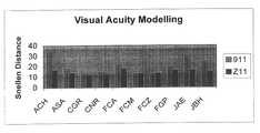 FIG. 2 shows modeled visual acuities of the test subjects withCeeOn® 911 lenses and the inventive averaged (“Z11”) lenses.