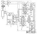 On the other hand, the return oil flows back from theactuator1, to theline19, then to the first cut-offvalve14, then to theactuator port3dof thefirst control valve3, then to thereturn port3b, then to thesupply port6aof thesecond control valve6, then to thereturn port6bthereof, then to thereturn passage18, and finally to the tank T.