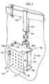 FIG. 7 is a front, side and top perspective view with a portion broken-away of an alternative packing device, according to the present invention; and